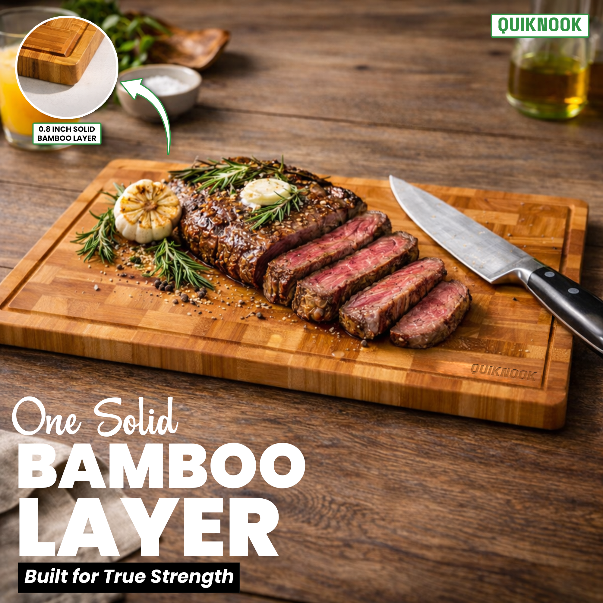 Crafted from a solid piece of natural bamboo instead of multiple bonded layers, these boards provide dependable support for everyday kitchen tasks.